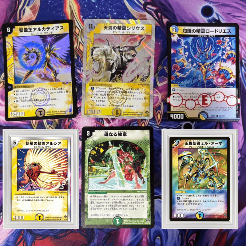 2002年発売のデュエル・マスターズ第4弾「闇騎士団の逆襲(チャレンジ・オブ・ブラックシャドウ)」で登場した、光文明・ベリーレアのエンジェル・コマンドです。