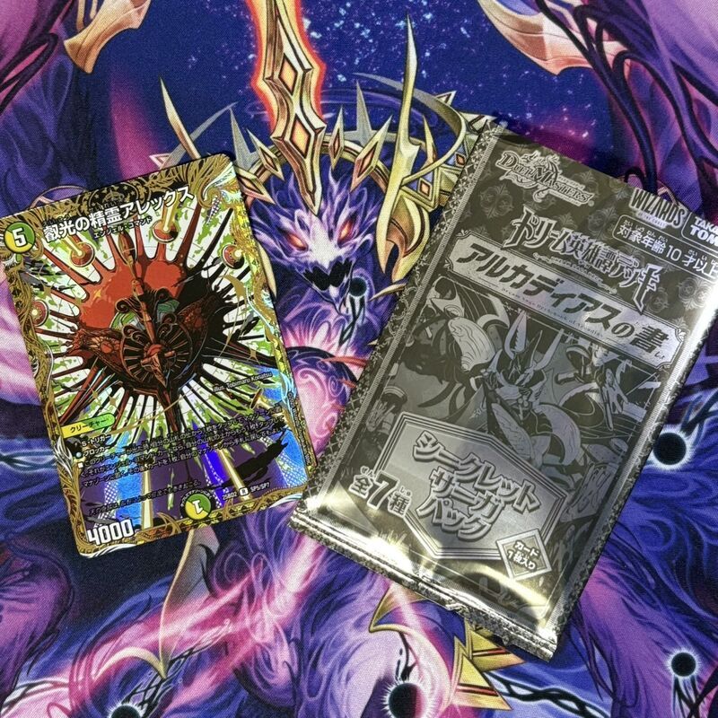 「王導聖霊 アルファディオス」については、デッキ内には収録されていませんが、シークレットサーガパックに封入されている可能性があります。